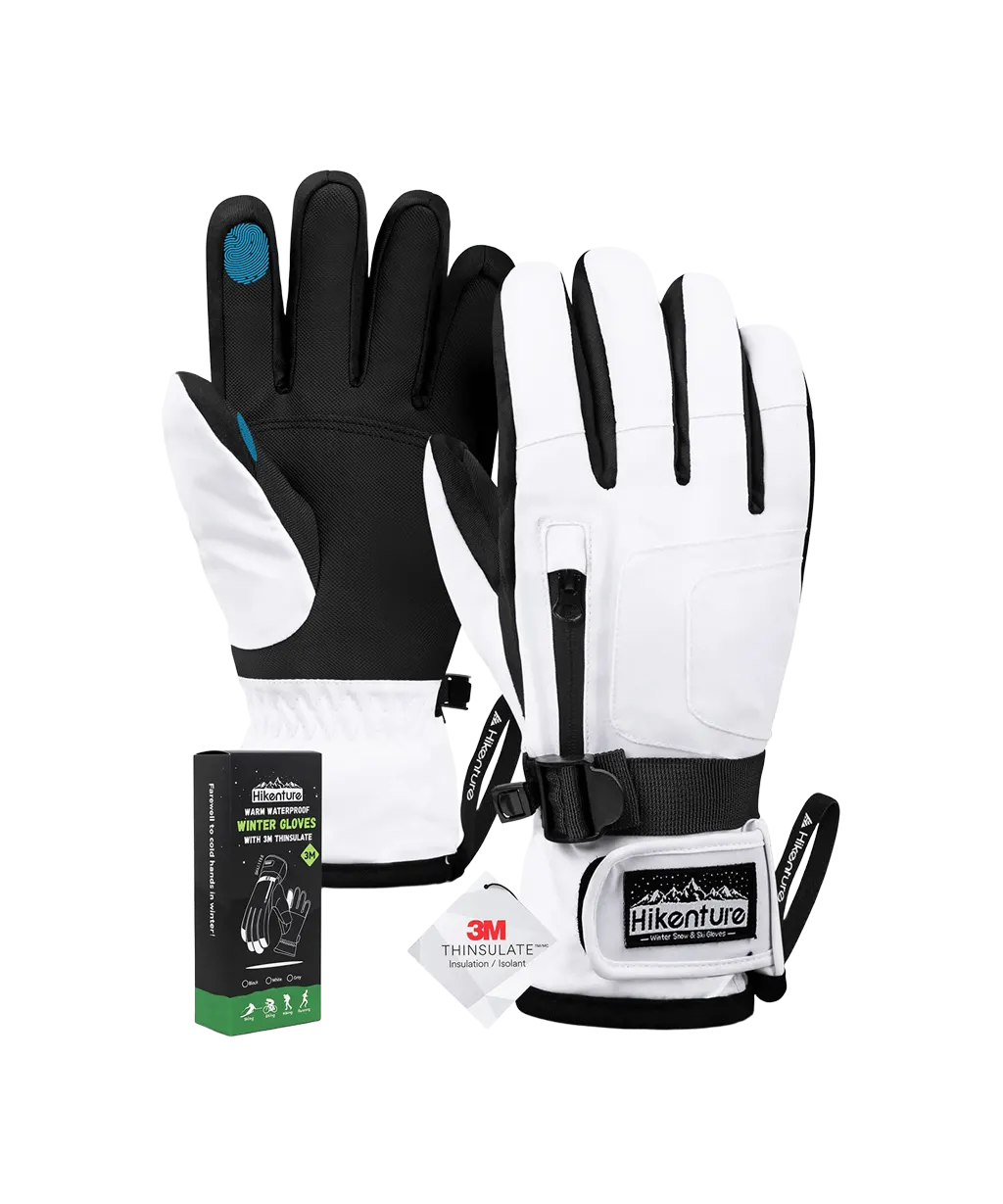 Hikenture Snow Gloves for Men&Women, 3M Thinsulate Waterproof Skiing Gloves with Pocket and Touchscreen Functionality(White)