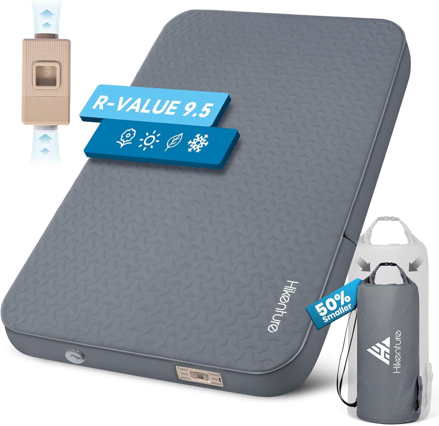 Hikenture 4″ Thick Self Inflating Sleeping Pad, Foam & Air Camping Mattress, 9.5 R-Value Insulated Sleeping Mat, Portable All Season Camping Pad for Tent, Car, Cot, Truck(Full (80″×53″))