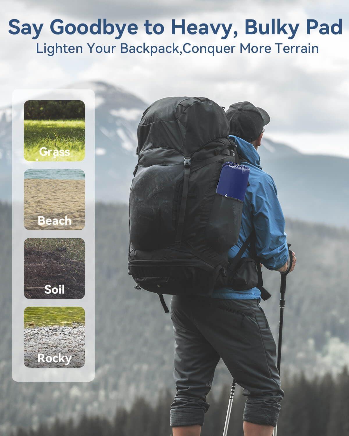 โ๐๐๐๐๐๐๐๐๐๐&๐๐๐๐๐๐๐๐๐๐๐๐: No need to bring separate camping mattress pad,our lightweight sleeping pad(3.64 lbs) folds smaller to 13.8×5.9 inch to save space and ounces in your backpack, more convenient to carry around! Light, tough, and ultra-compact, make it perfect for outdoor use, such as RV camping, car camping, hiking, backpacking,glamping, road tripping, travel, the 2 person sleeping pad can also used as guest bed at home.