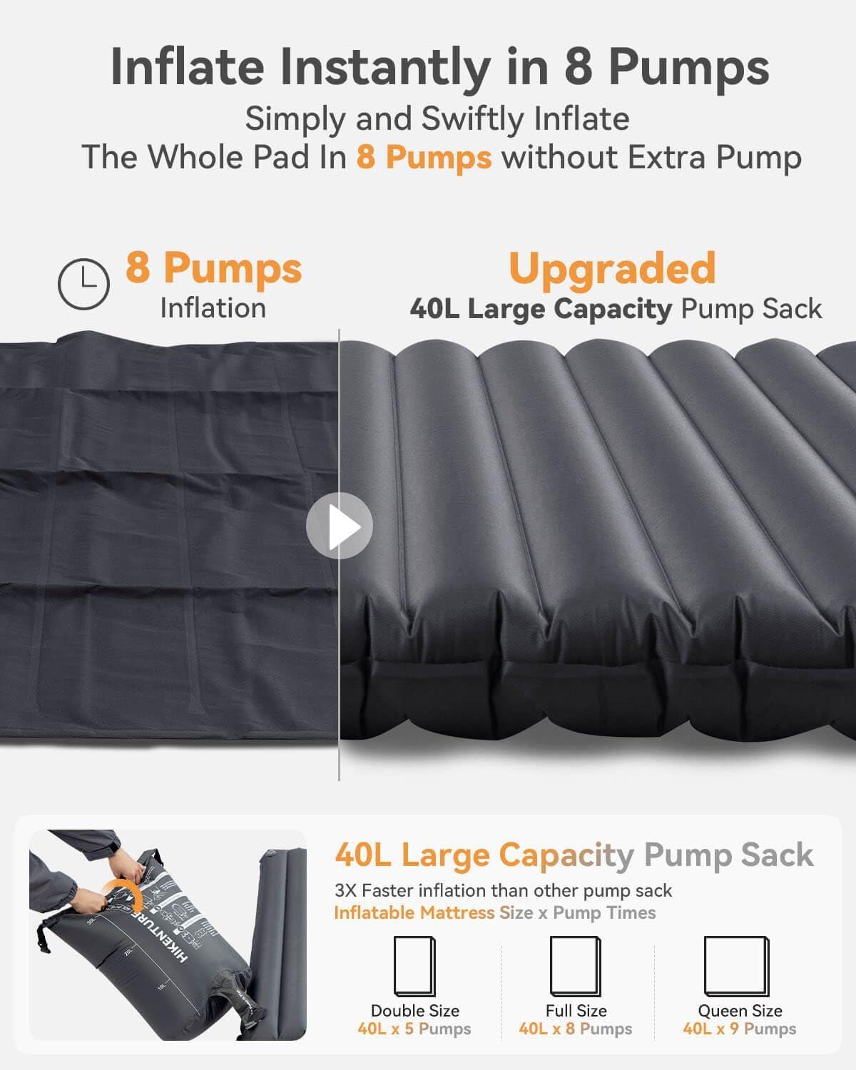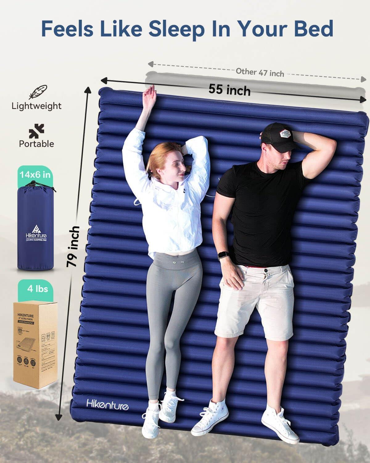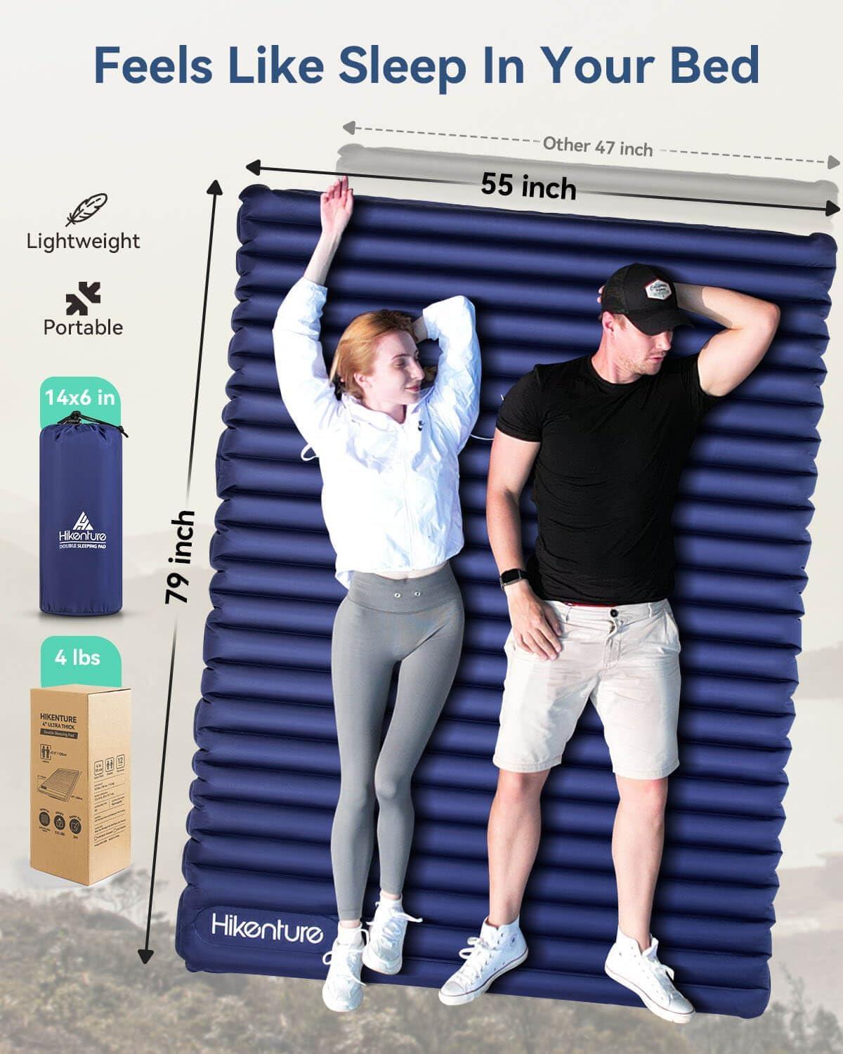 Hikenture Double Sleeping Pad for Camping, Ultralight 4″ Extra-Thick Camping Mattress 2 Person, Inflatable Backpacking Sleeping Mat, Hiking Air Mattress for Tent (Foot Pump)(Full XL)