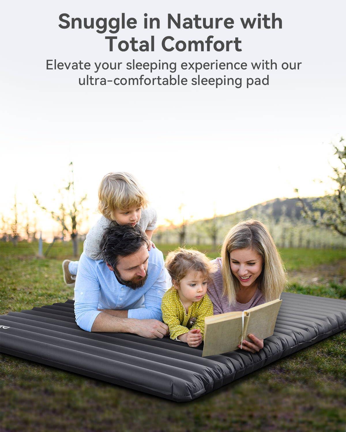 ๐๐๐ ๐ ๐๐๐๐ ๐๐๐๐: Look for a luxury sleep experience under the stars with your family? You known that Hikenture double sleeping pad is the lightest ultra-thick camping mattress for 2 person on the market! It can blow up to 79×47.5×4 inches – a generous size to accommodate two happy campers.
