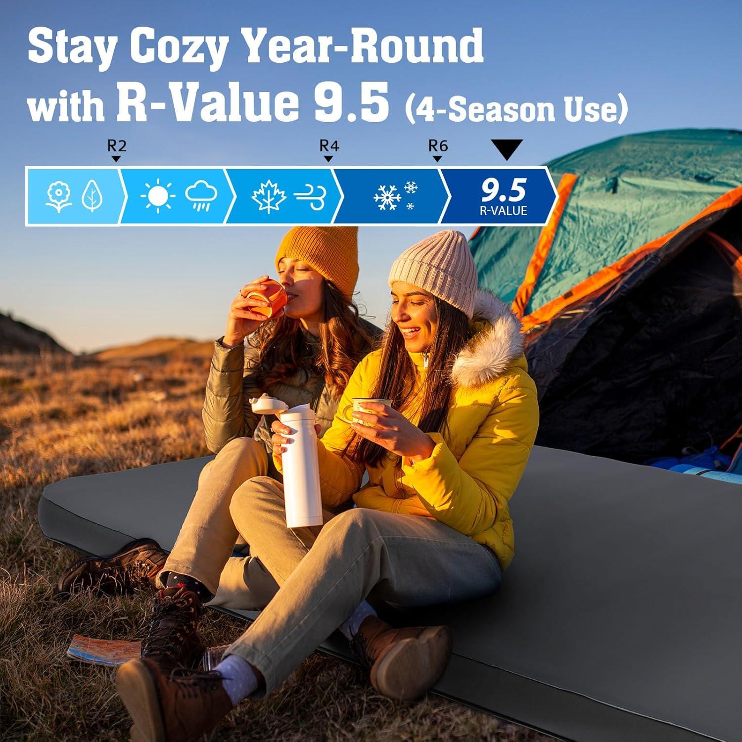 ๐Š๐„๐„๐ ๐˜๐Ž๐” ๐–๐€๐‘๐Œ ๐ˆ๐ ๐€๐‹๐‹ ๐’๐„๐€๐’๐Ž๐๐’ – Winter camp? Yes! We've designed this camping air mattress to provide ample isolation and warmth in all seasons. With a high R Value of 9.5, our foam camping mat serves optimal for 4-season car camping and also ideal as a guest bed for overnight guests, providing you and your guests with the feeling as in your own beds.