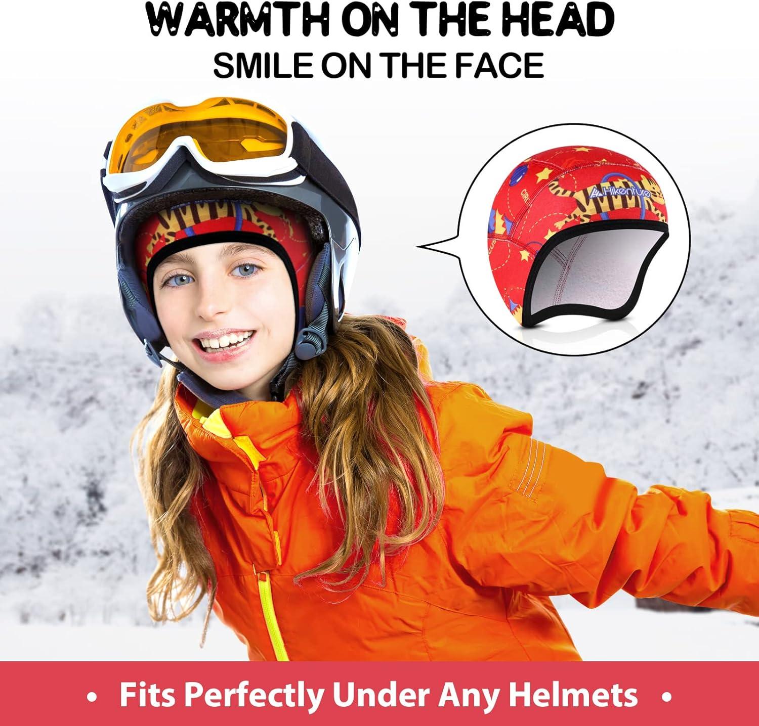 Hikenture Kids Skull Cap Helmet Liner Winter Hat for Boys and Girls Beanie Ski Hat with Thermal Fleece for Snow Sports…(Red7)