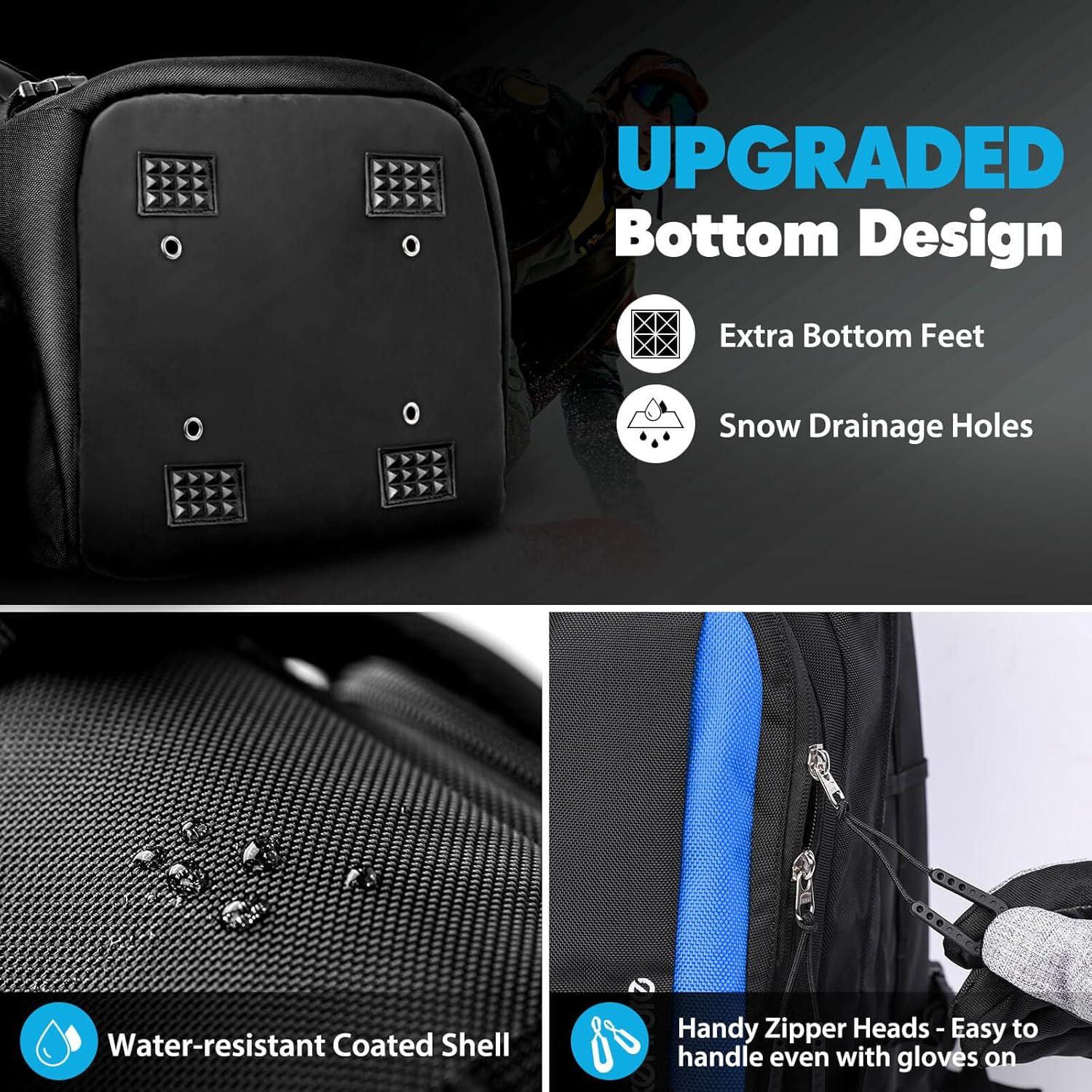 ๐ŸŽฟใ€๐”๐๐†๐‘๐€๐ƒ๐„ ๐–๐ˆ๐“๐‡ ๐’๐๐Ž๐– ๐ƒ๐‘๐€๐ˆ๐๐€๐†๐„ ๐‡๐Ž๐‹๐„๐’ใ€‘Remaining snow on ski boots is unavoidable, which in turn causes the boot compartment to become wet. Our ski boot bag backpack comes with grommets in the bottom as drain holes, letting water out and keep the inside of your ski boot backpack dry. The additional feet help protect the bottom of your padded ski bag and keep it away from snow while being put on the ground.