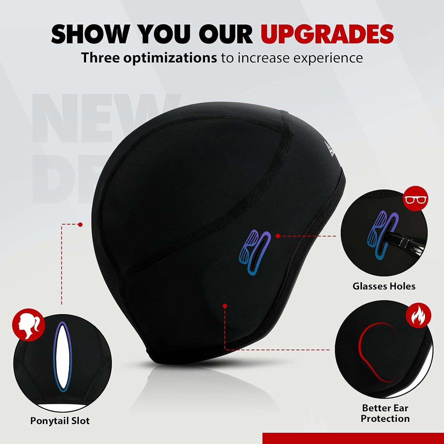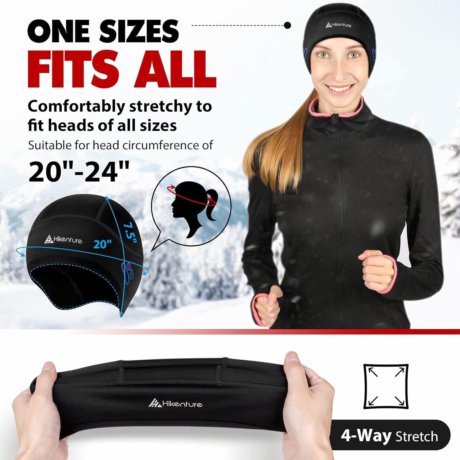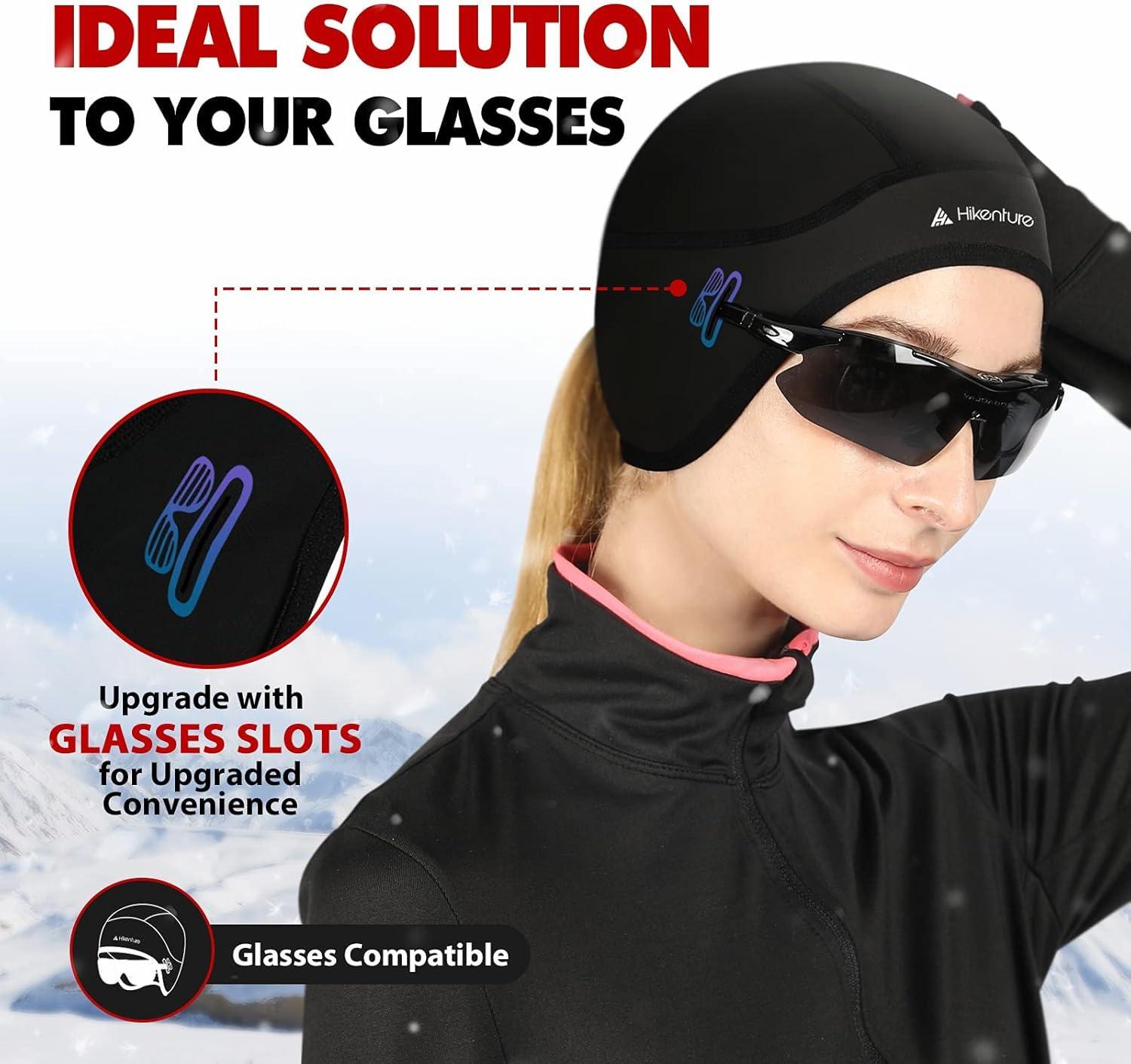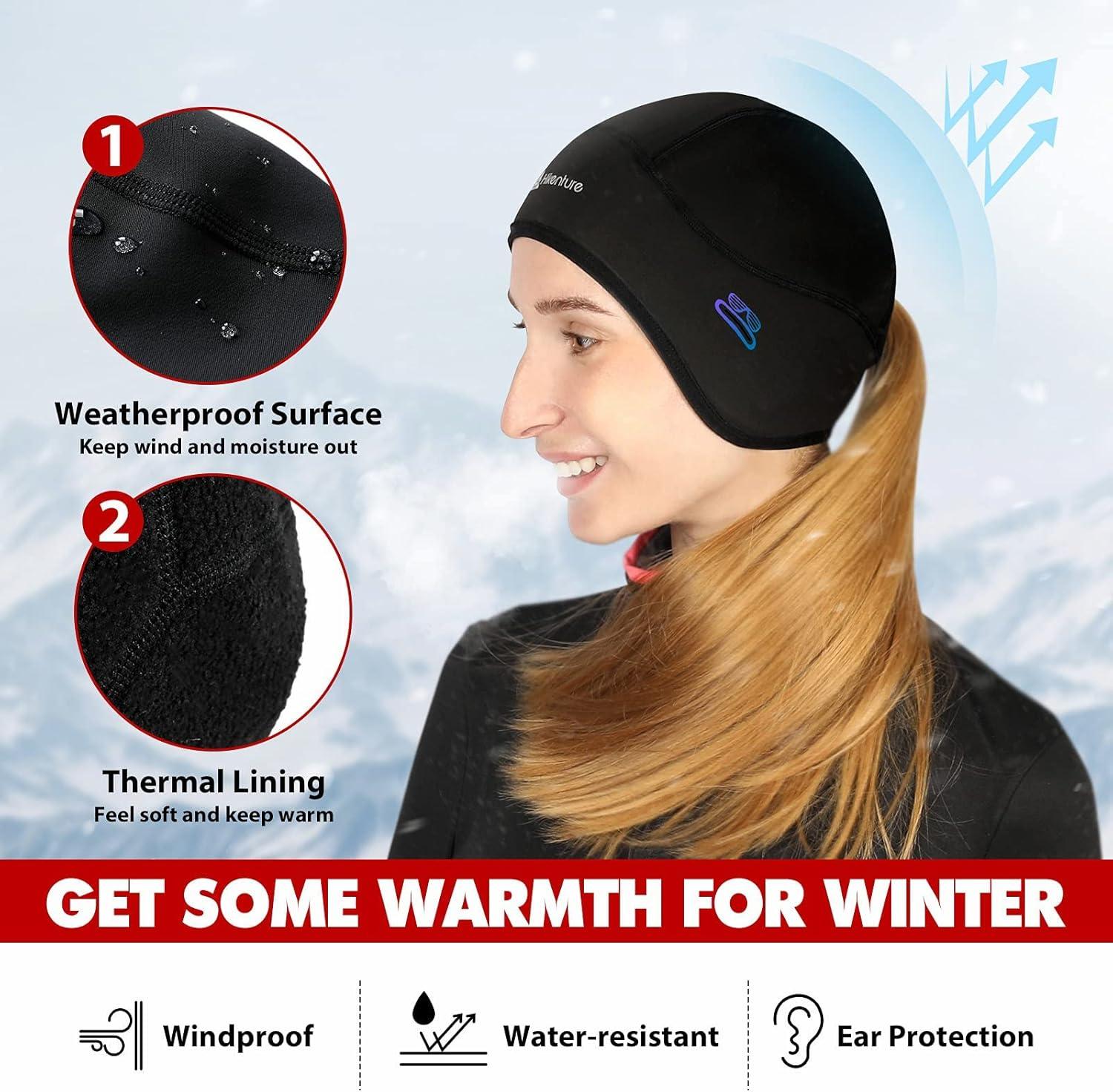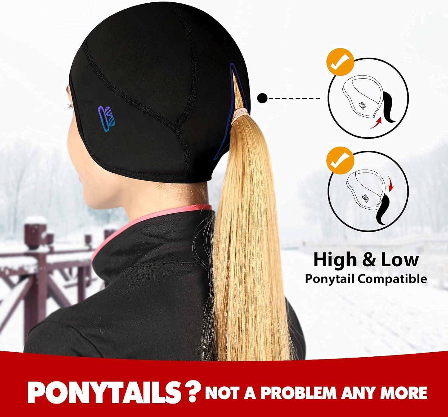 Hikenture Skull Cap Helmet Liner with Ponytail, Women’s Winter Thermal Cycling Cap Running Hat Beanie with Glasses Holes(Black)